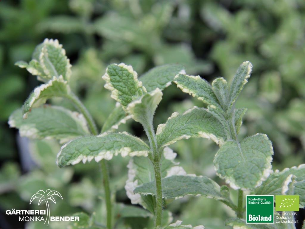 Verwendung: hoher Zierwert durch panaschierte Blätter, kompakter Wuchs, für Drinks und Kindertees geeignet