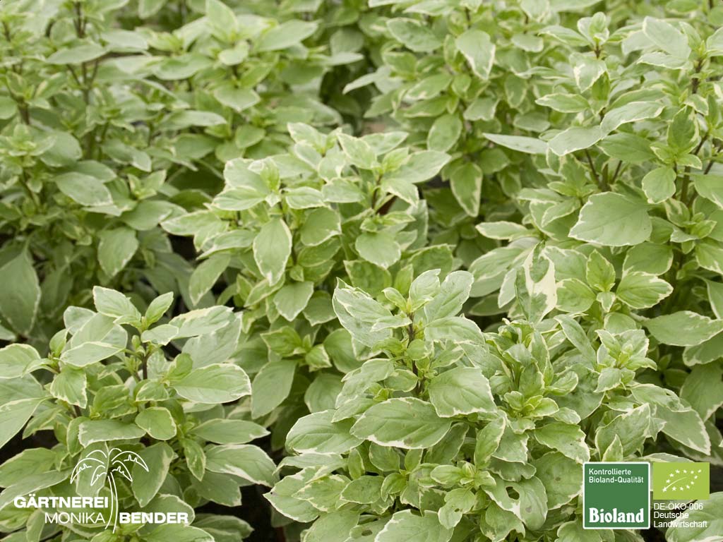 Verwendung: gutes Aroma, gut geeignet für Pesto, Tee, mediterrane Gerichte, Salate, Tomate, ist verdauungsund schlaffördernd, hustenstillend, nervenberuhigend